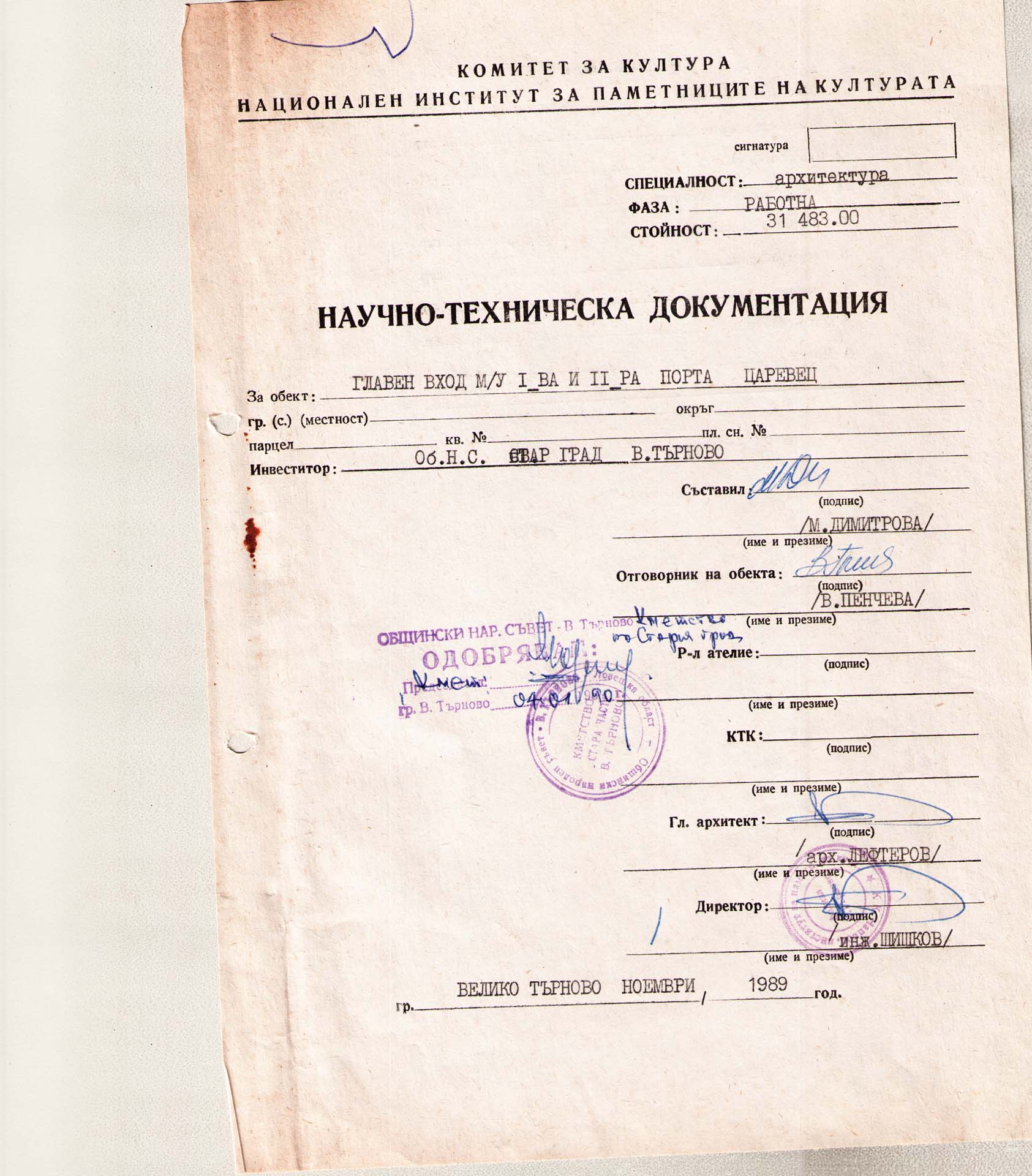 Подзаглавни данни: Проект за консервация и реставрация-1989г.