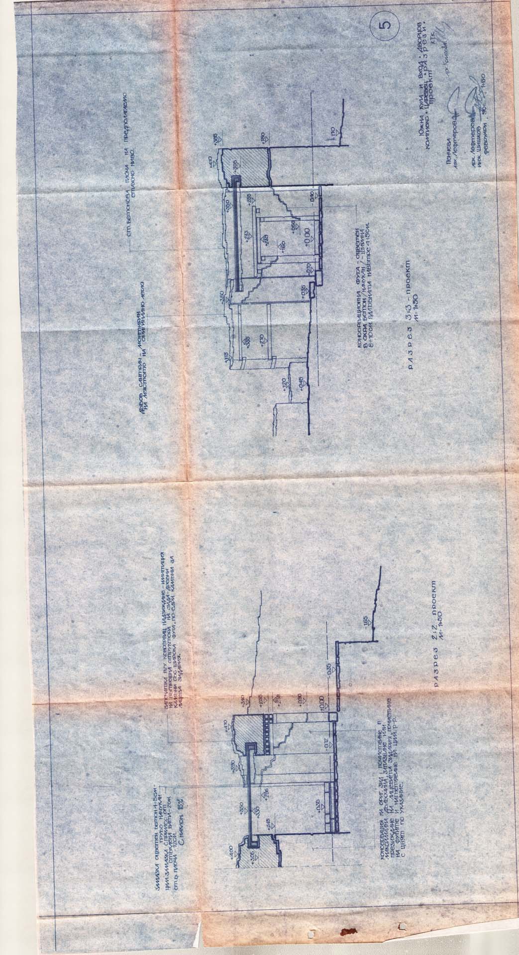 Южна кула и вход -Дворец / Разрез 2-2 и 3-3 проект